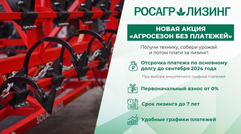 —Росагролизинг запустил новую акцию "Агросезон без платежей" до 30.06.2023 г.