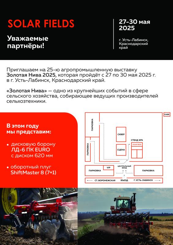 Приглашаем вас посетить наш стенд на одной из крупнейших аграрных выставок страны —«Золотая Нива 2025»,